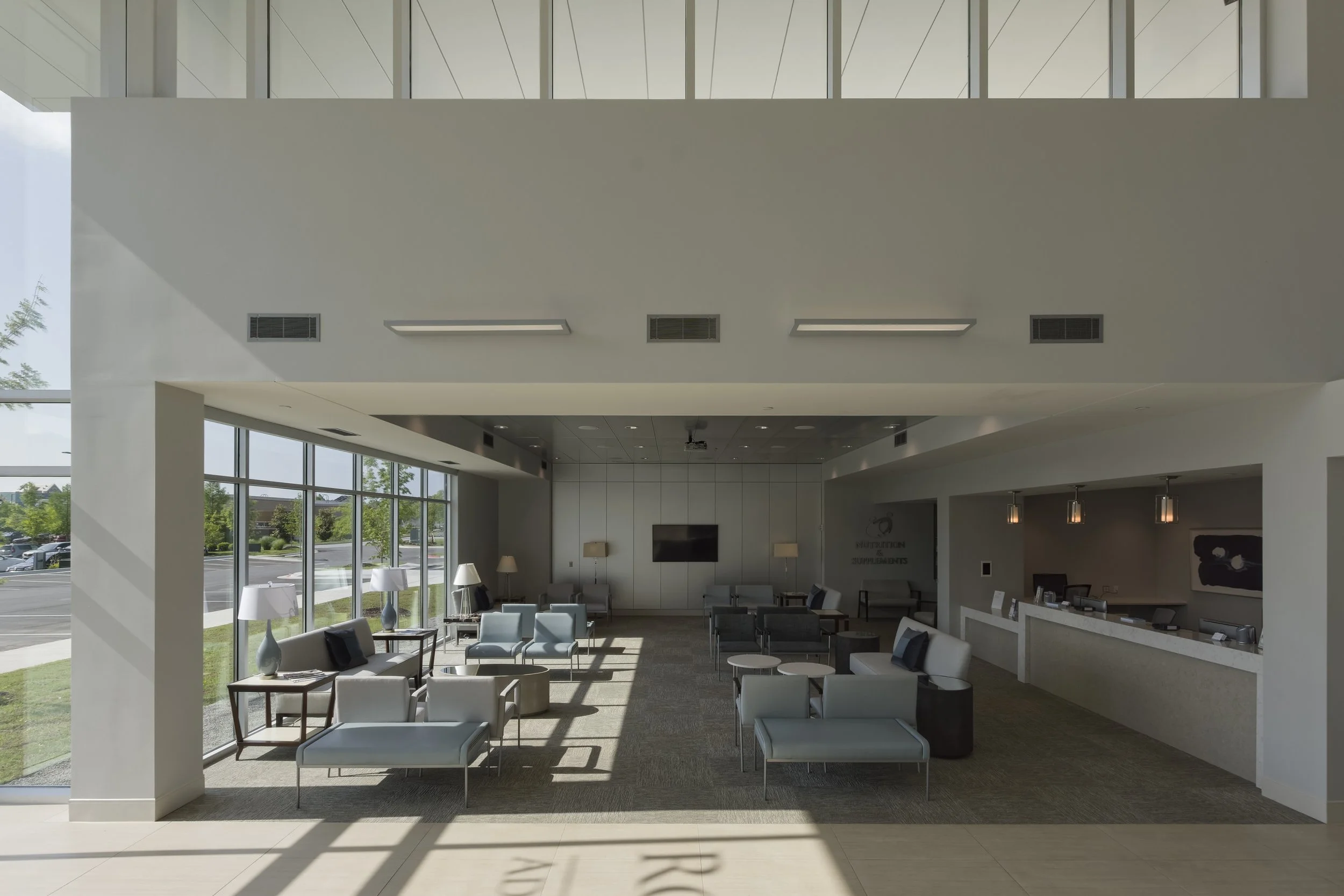 The clinic features a spacious patient waiting and checkin area, centralized nurse station, four private doctor offices, 12 exam rooms, an EKG and lab area, and multiple consultation rooms. During construction, additional tenant were introduced and incorporated into the facility to house a physical exercise studio, a sleep study lab, and a plastic surgery clinic. Each tenant suite was uniquely designed to meet their specific operational needs, while maintaining a cohesive architectural language throughout the building.