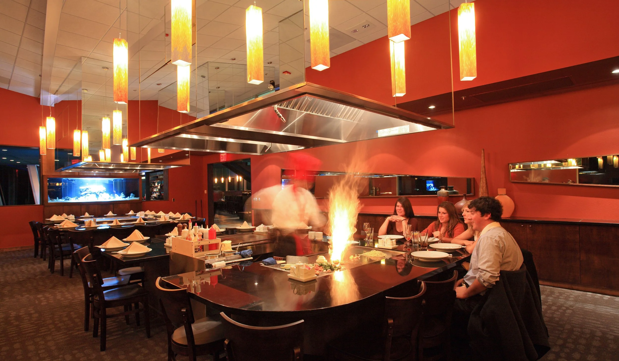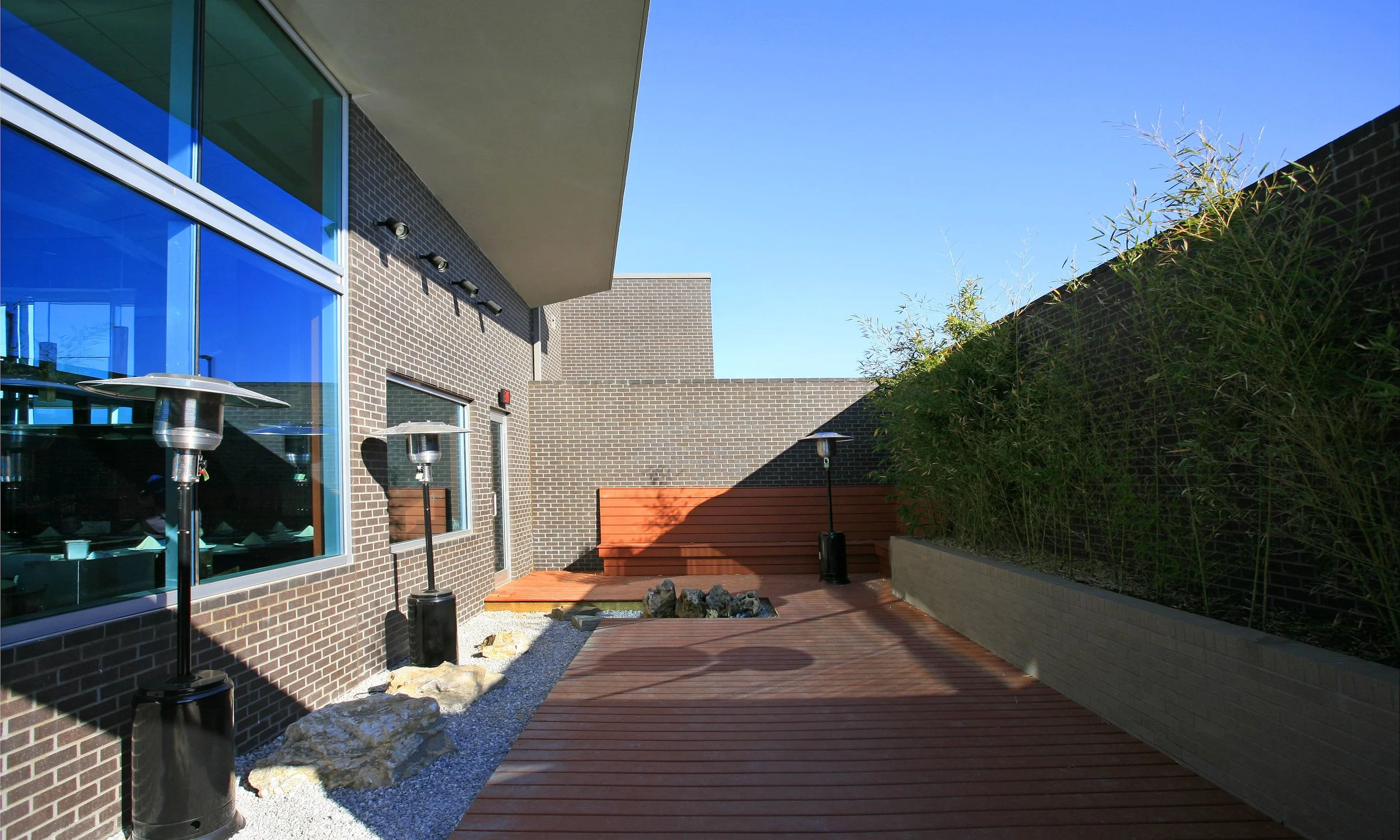 The south side of the building engages this view with walls of glass and a terrace perched on the edge of the bluff. The 11,000 sq. ft. restaurant will incorporate Japanese Teppanyaki style tables, a sushi bar, a large, indoor/outdoor bar, and a second floor Skybar. In addition to an enclosed Japanese Zen Garden, there is a terrace with stone planters and a koi pond.